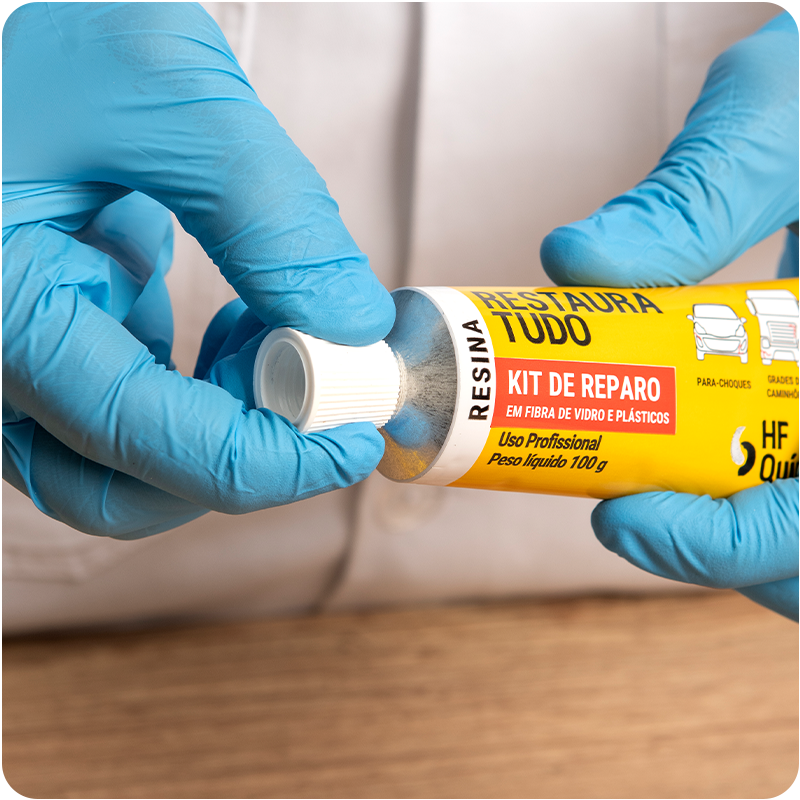 É muito simples: A peça a ser trabalhada deverá estar com a região a ser colada isenta de poeira, graxa ou óleo. Para melhor resultado, recomendamos lixar com lixa grossa ou lixadeira elétrica a superfície danificada até obter uma abertura em "V" de 4 a 6 mm para melhor penetração do adesivo. Misturar a Resina com o Endurecedor em partes iguais (1:1 em volume) durante aproximadamente 1 minuto. Fique tranquilo, o tempo de trabalho com o produto misturado é suficiente para realizar o reparo antes da cura começar. Aplicar o produto já homogeneizado na peça e aguardar secagem à temperatura ambiente por quatro horas (o tempo de secagem pode variar, se o dia estiver quente e seco será mais rápido, se estiver frio e úmido será mais demorado).